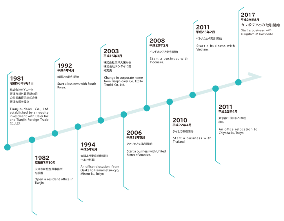 Tendai Co., Ltd. founded in September 1981 is a joint company between Japan (The Daiei, Inc.)